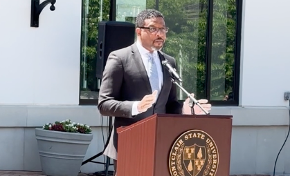 Montcliar State President Jonathan Koppell took the podium to express his excitement about the partnership extension